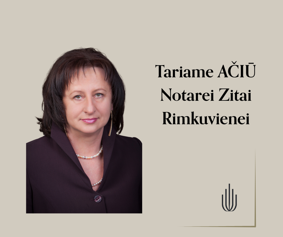 Notariato bendruomenė nuoširdžiai dėkoja Kauno miesto 22-ojo notaro biuro notarei Zitai Rimkuvienei, kuriai 2025 m. gruodžio 31 d. baigėsi notaro įgaliojimai.