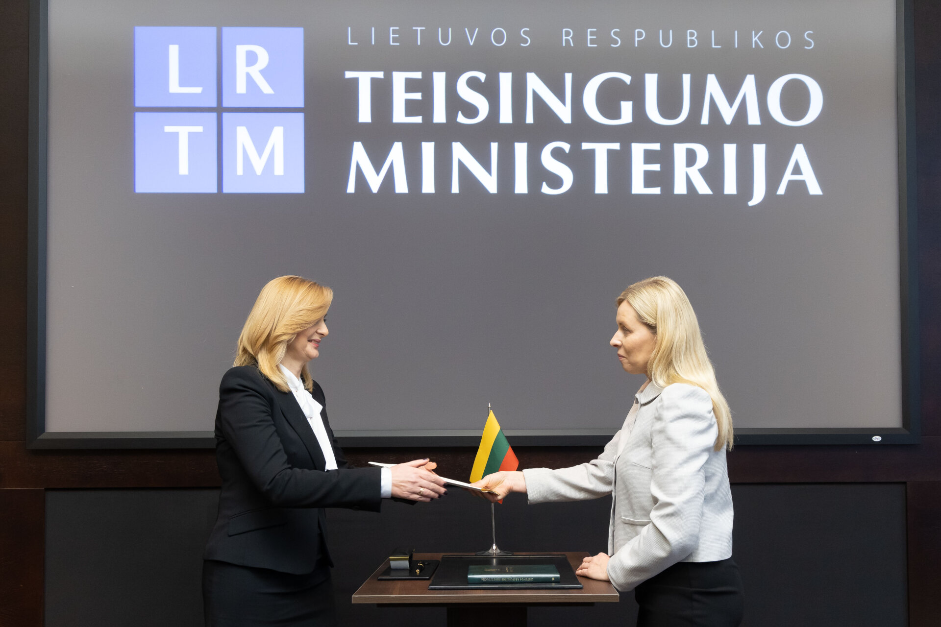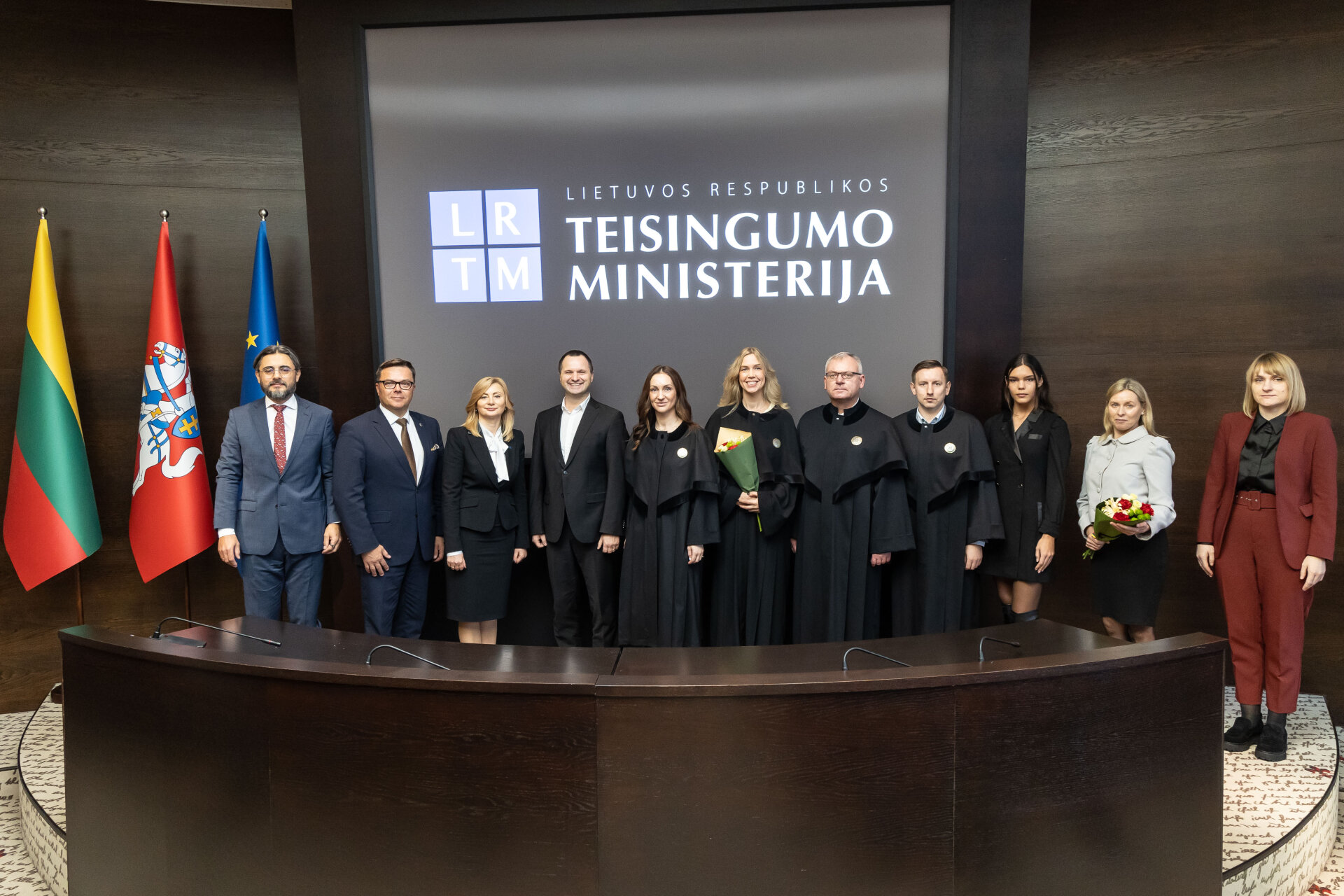 Naujai prisiekusią notarę Teisingumo ministerijoje vykusioje priesaikos ceremonijoje nuo Lietuvos notarų bendruomenės sveikino Lietuvos notarų rūmų prezidiumo narys, notaras Dainius Palaima.