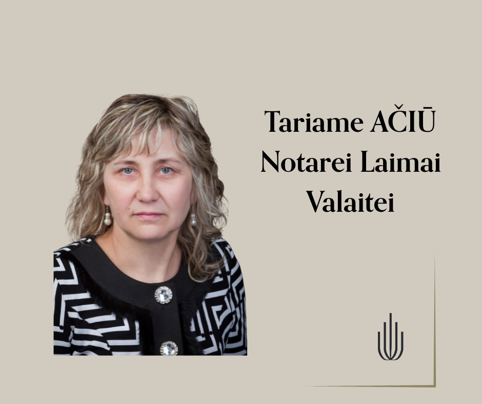 Baigiant notaro įgaliojimus notariato bendruomenė nuoširdžiai dėkoja notarei Laimai Valaitei už ilgametį ir atsakingą darbą, nuoširdų atsidavimą notaro profesijai.