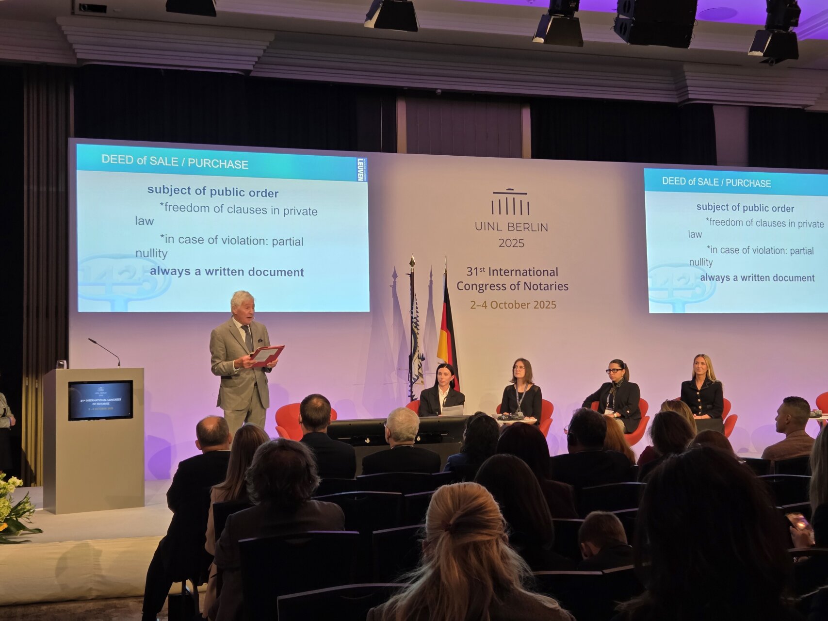 2025 m. rugsėjo 30 – spalio 1 dienomis Berlyne, Vokietijoje posėdžiavusi Tarptautinė notariato sąjunga (UINL) pritarė naujų šalių priėmimui į Tarptautinę notariato sąjungą bei išrinko naujai trijų metų kadencijai prezidentą, apdovanojo notarus. O tris dienas, spalio 2-4 dienomis, vykusiame kongrese dėmesys buvo sutelktas į notariato vaidmenį technologijų kontekste, aptartos naujausios pasaulinės notariato tendencijos.
