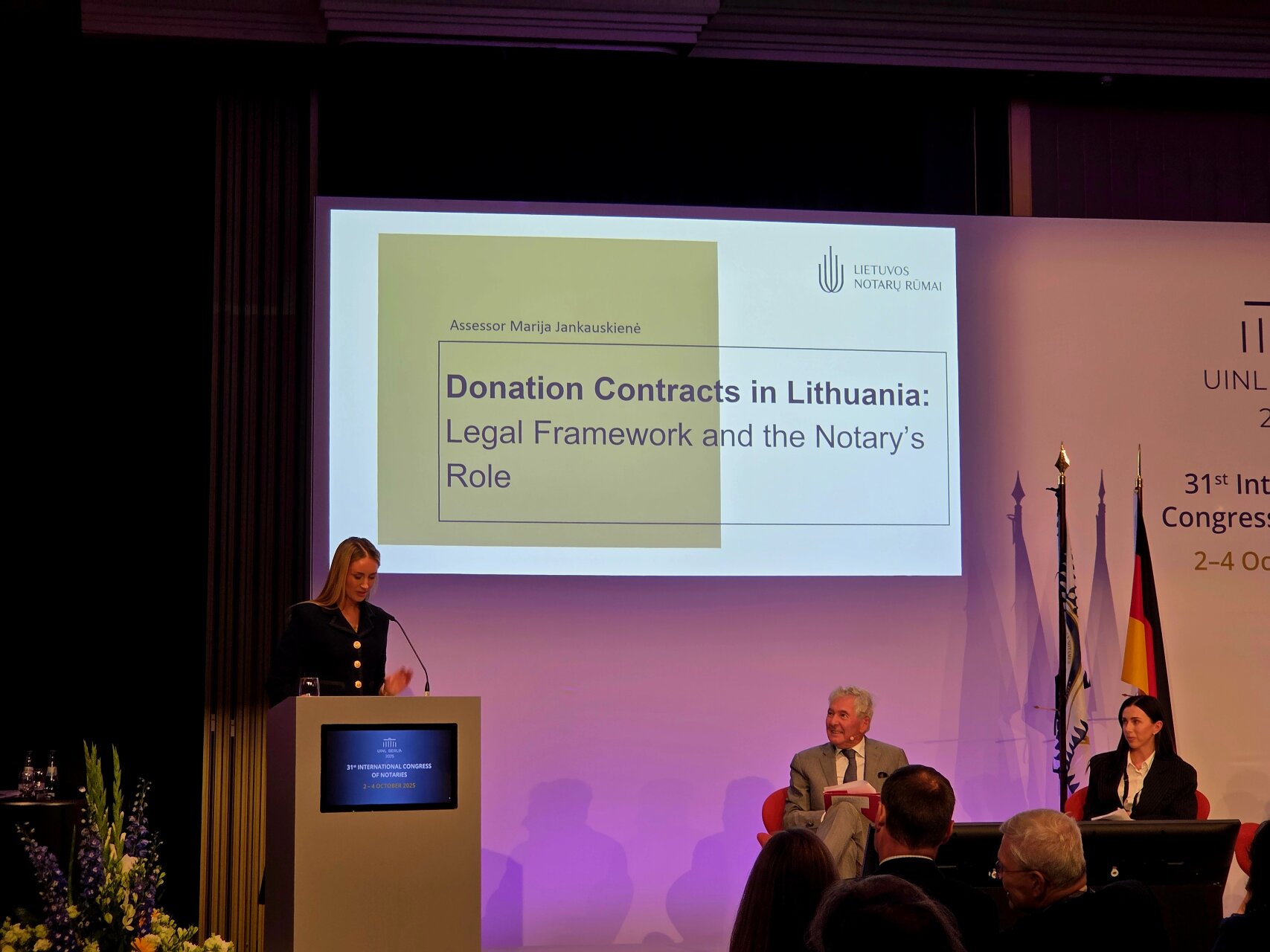 Į šią diskusijų sesiją buvo atrinkta lietuvė asesorė Marija Jankauskienė, kuri skaitė pranešimą „Dovanojimo sutartys Lietuvoje: teisinis reguliavimas ir notaro vaidmuo“ (angl. „Donation contracts in Lithuania: Legal framework and the Notary‘s role“).
