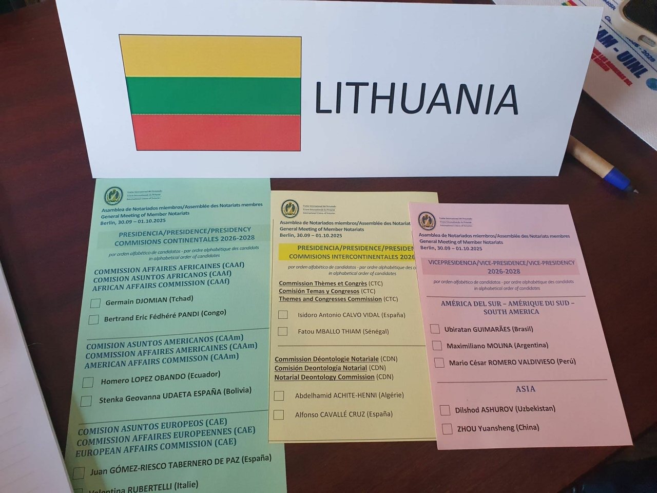 Dar vienas svarbus įvykis – 2025 m. spalio 1 d. Berlyne (Vokietijoje) susirinkusi Notariatų narių asamblėja išrinko naują Tarptautinės notariato sąjungos (UINL) prezidentą. Ženklia balsų persvara 2026–2028 metų kadencijai naujuoju UINL prezidentu išrinktas Meksikos notaras David Figueroa Márquez.